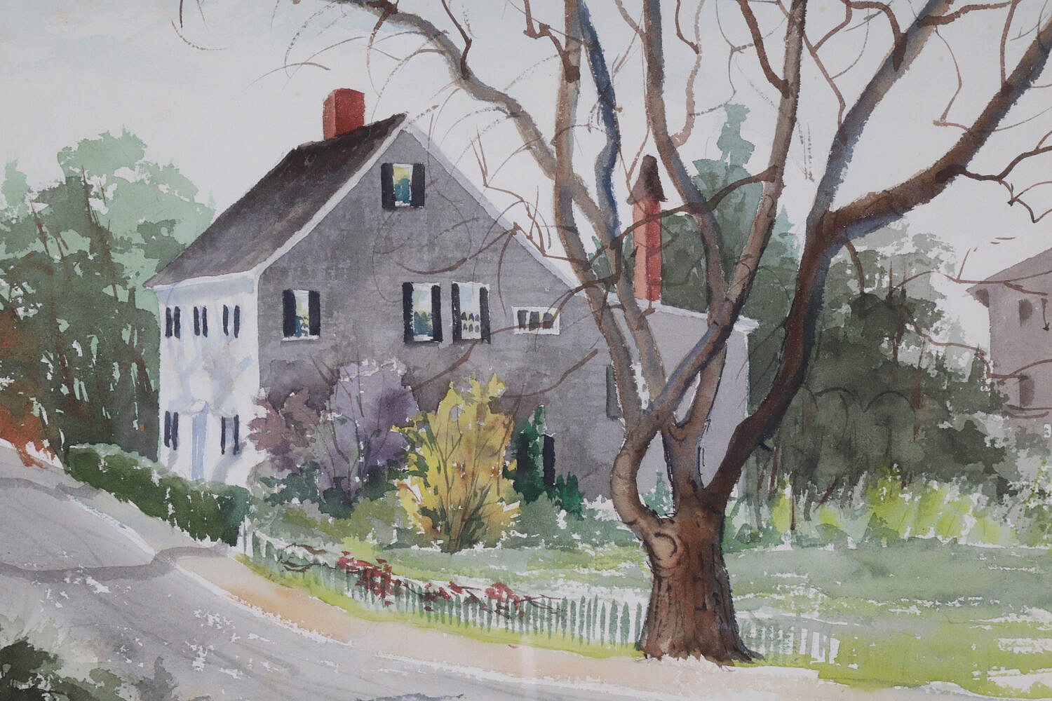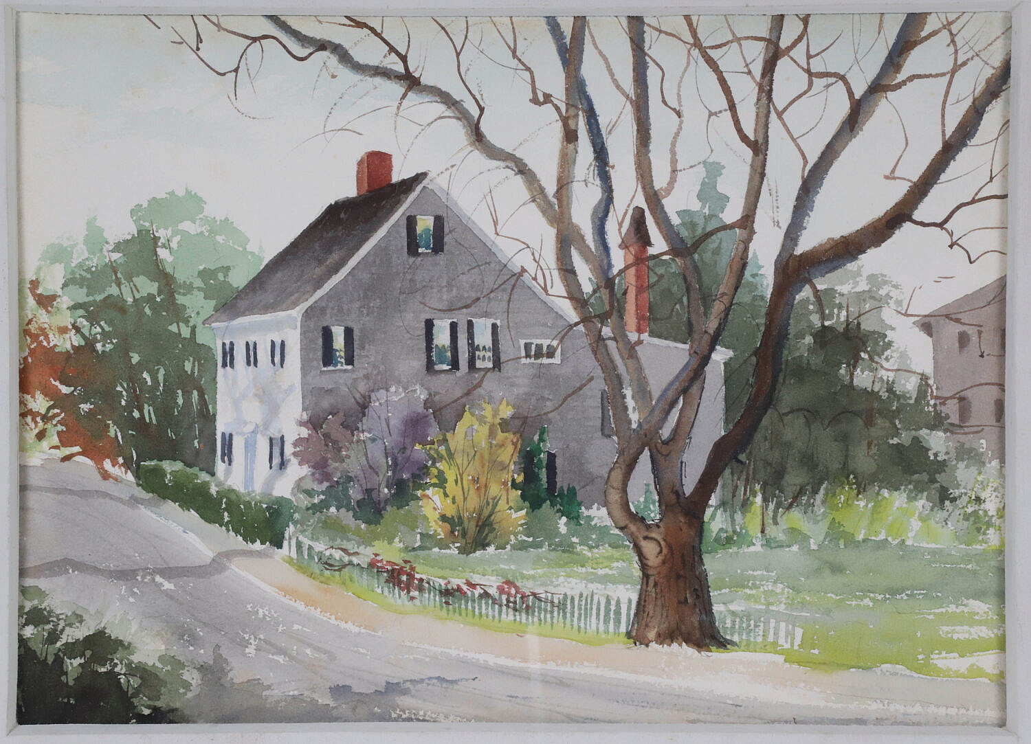 Watercolor on Paper “Nantucket Street Scene”, unsigned, matted and framed