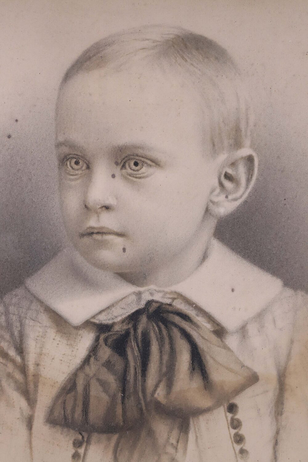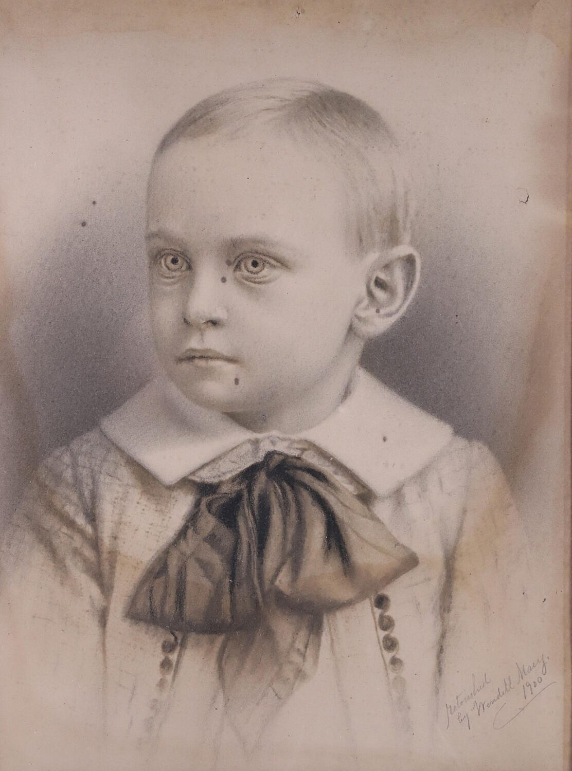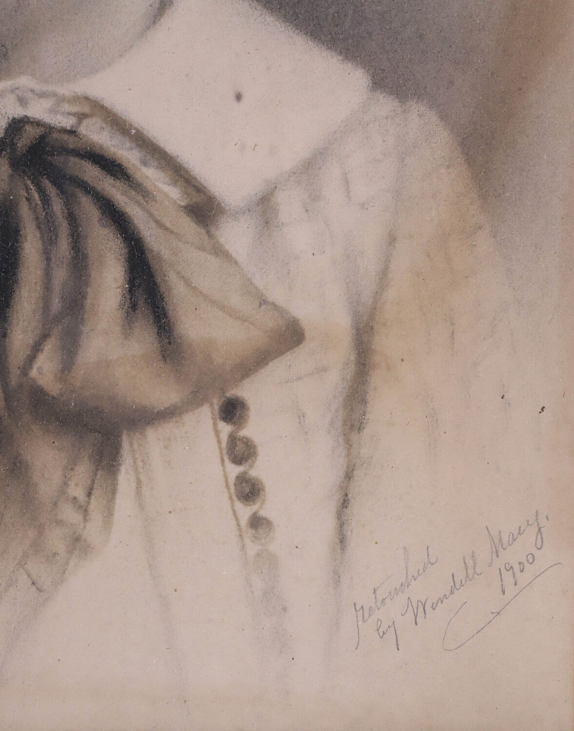 Wendell Macy (1845-1913) Retouched Charcoal Portrait of Child, pencil signed and remarked lower right “Retouched by Wendell Macy, 1900”, in original period gilt frame and mat