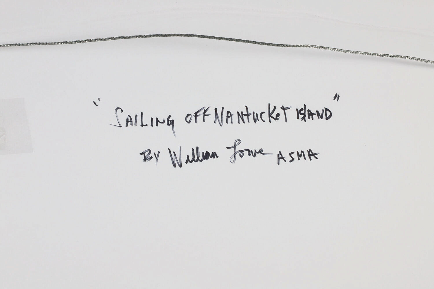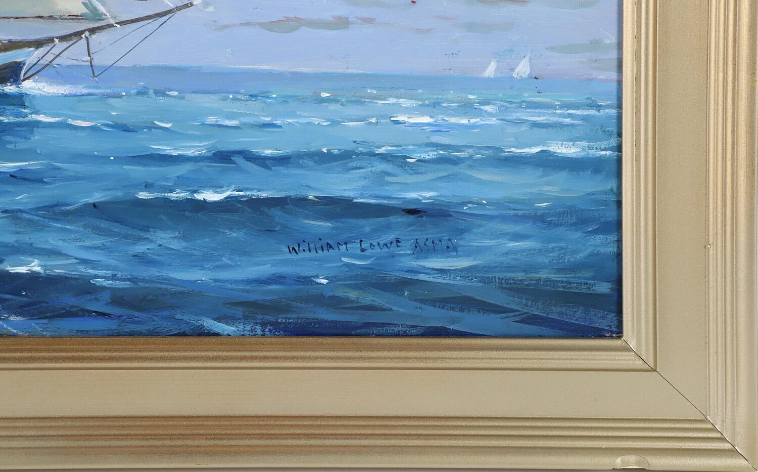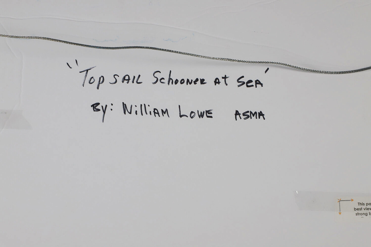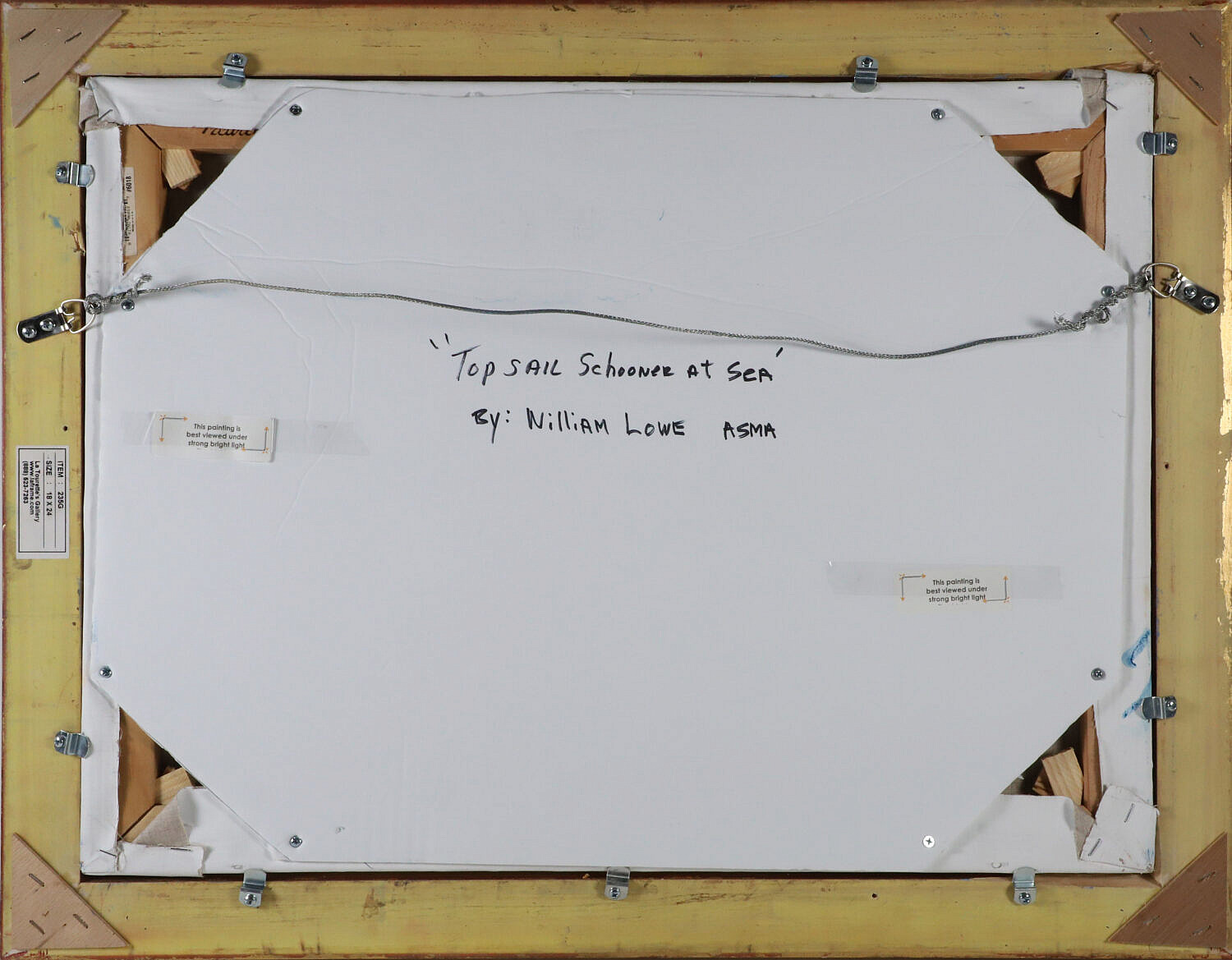 William Lowe (American b. 1940) Oil on Canvas “Top Sail Schooner at Sea”, signed lower left William Lowe ASMA in molded gilt frame