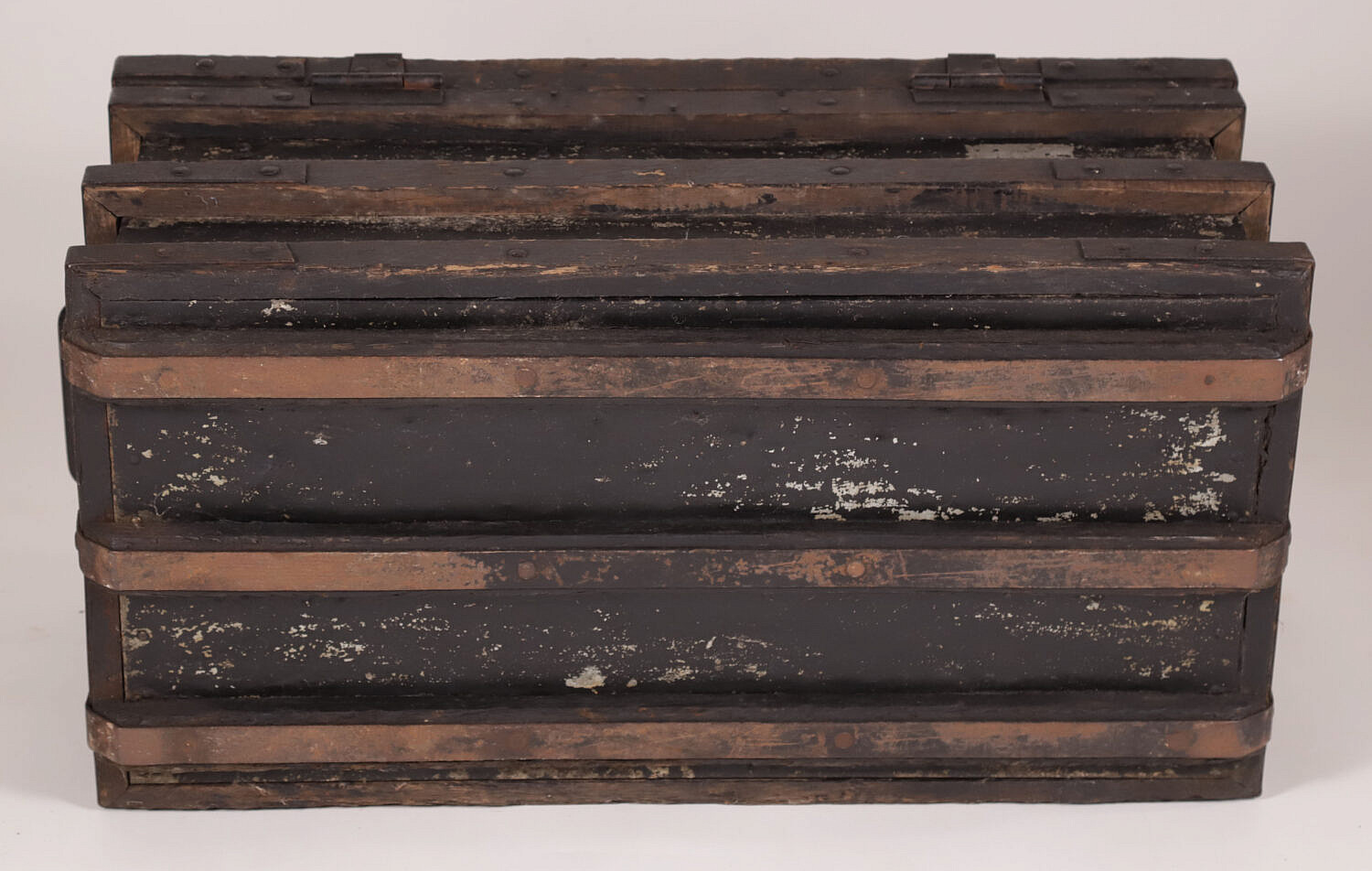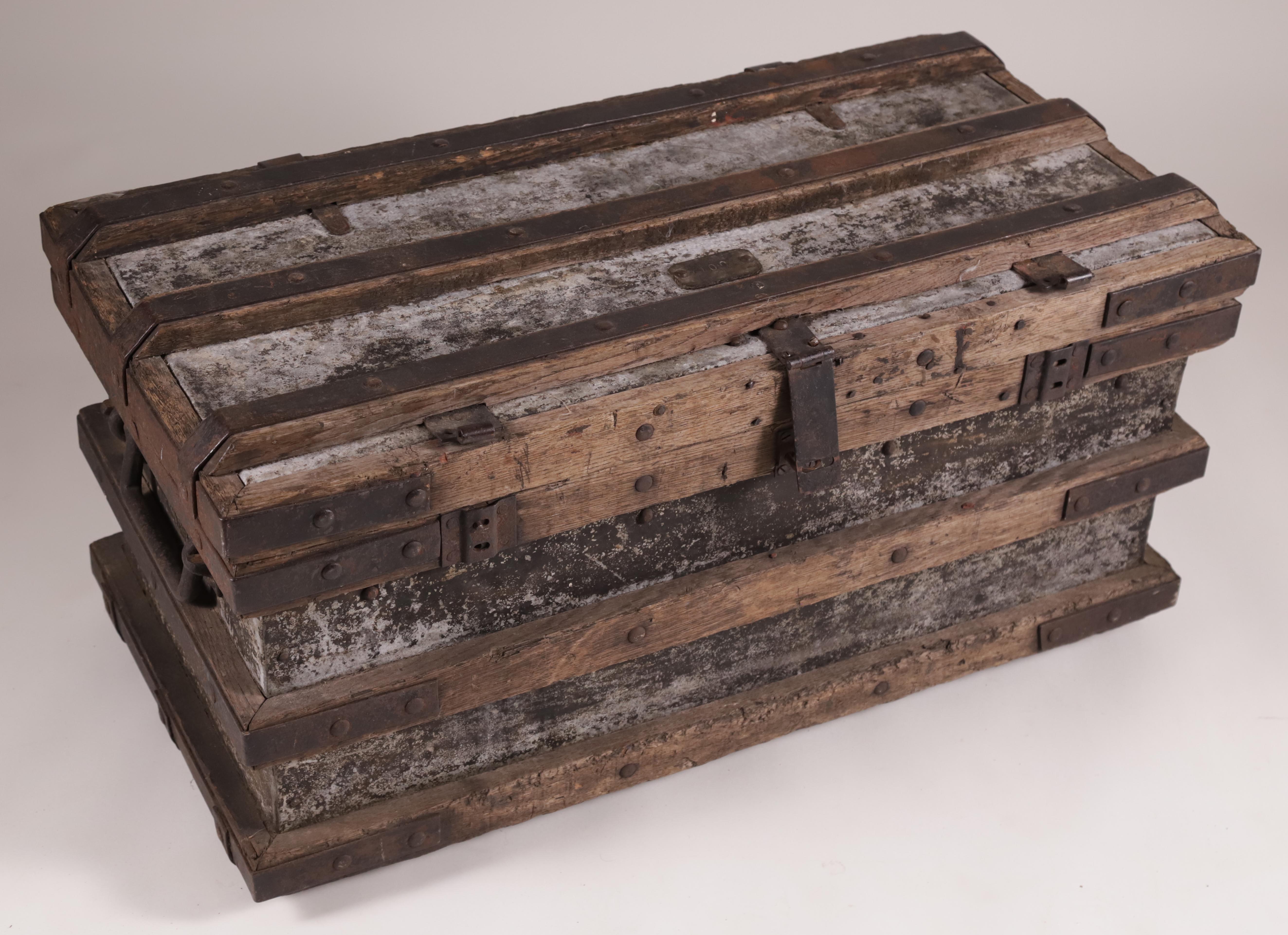 Military Iron Strapped Trunk, circa 1940 Consign Now DeptFurnitureSizeHeight 18 in. Width 36 in. Depth 18.5 in. Military Iron Strapped Trunk, circa 1940 Height 18 in. Width 36 in. Depth 18.5 in. Please note that this auction has ended. Click here for an overview of this auction.