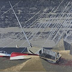 Bobby studied at the Worcester Art Museum School and at the Museum School in Boston with Bauhaus founder Walter Gropius. Polly was self-taught under the tutelage of her brother, employing a sophisticated folk-art approach to her painting. They both exhibited at the Lobster Pot Gallery, where attendance for their 1971 opening set a Lobster Pot record, as well as at the Artists Association, the Main Street Gallery [and Sailor’s Valentine Gallery, all on Nantucket.] Bobby’s studios included locations at the Barnsite on Straight Wharf and the Barn on Coffin Street. ~ Artists Association of Nantucket.