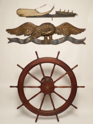 Folk Art Carving, Carved and Painted Eagle, Ship’s Steering Wheel