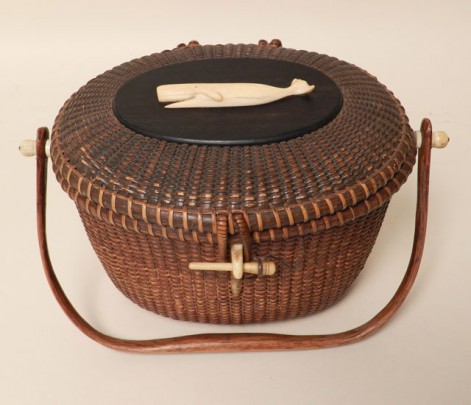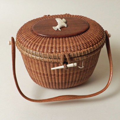 Jose Formoso Reyes Friendship Basket with Carved Ivory Seagull on Lid