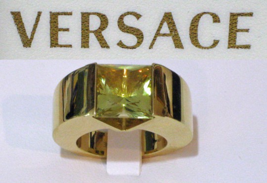 Versace 18k Yellow Gold and Lemon Quartz Ring