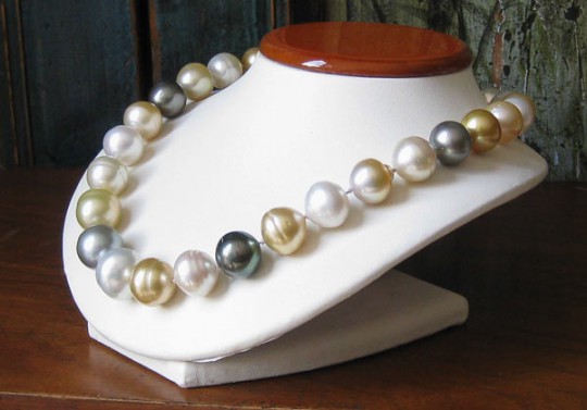South Sea Multicolor Pearl Necklace in Shades of Gold, Grey, Black, Silver and White