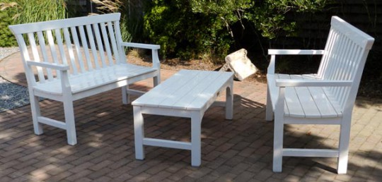 Pair of Weatherend White Lacquer Painted Benches and Rectangular Low Table