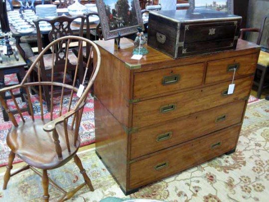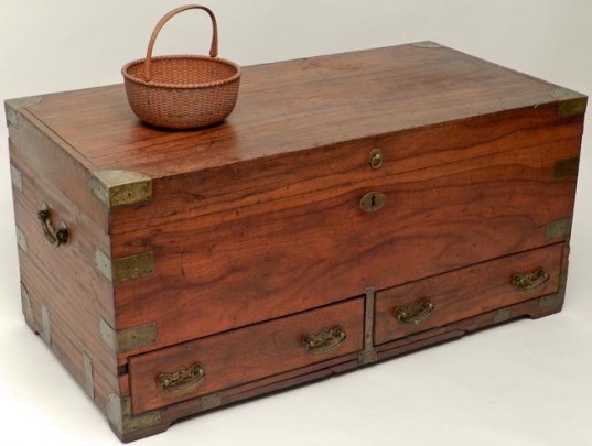Brass Strapped Trunk, William Appleton Shallow Round Swing Handle Basket