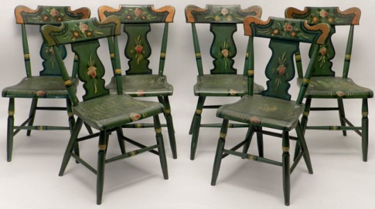 Set of Six 19th Century Pennsylvania Plank Seat Dining Chairs
