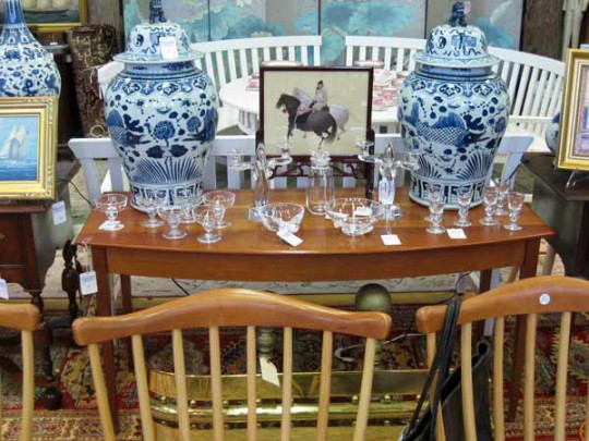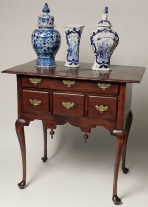 Queen Anne Lowboy, Ginger Jar, Two Pieces of Dutch Ceramics