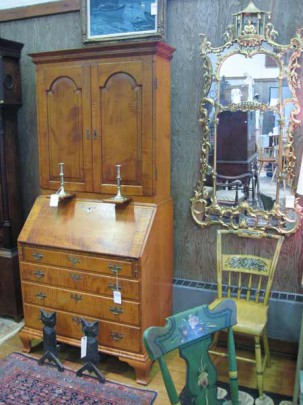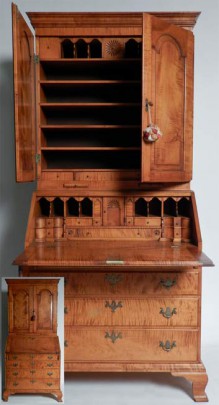 Eldred Wheeler Tiger Maple Two-Part Secretary