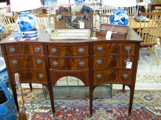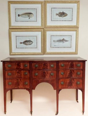 Five Bloch Hand Colored Fish Engravings, Bowfront Sideboard