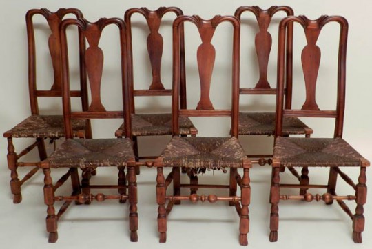 Six Maple William and Mary Side Chairs