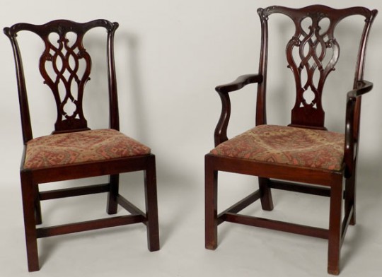 Set of Eight 19th C. Style Chippendale Mahogany Dining Chairs