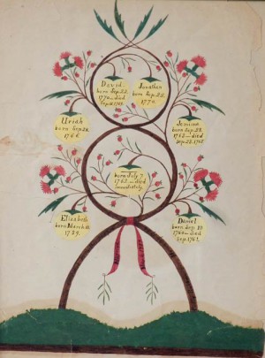 18th Century Nantucket Pinkham & Chadwick Family Tree Watercolor and Ink on Paper