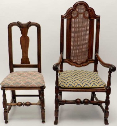 William and Mary Rush Seat Side Chair, William and Mary Armchair