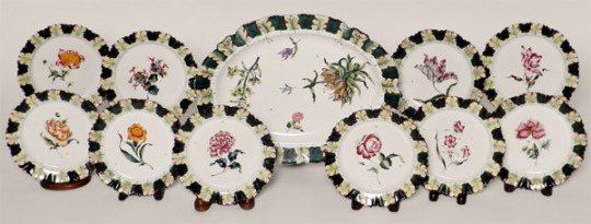 Set of 10 Segries Porcelain Plates and Platter