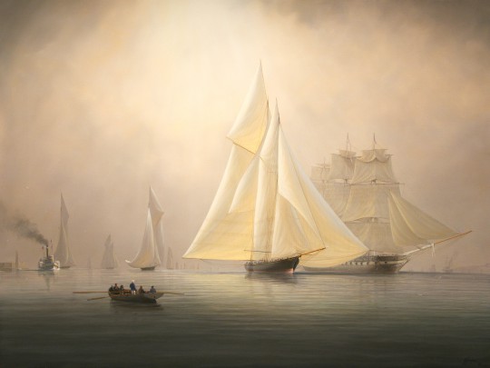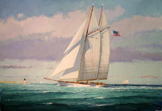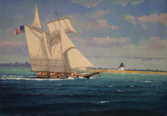 William Lowe Oil on Linen “Schooner Entering Nantucket”