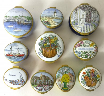 Collection of 10 Anderson’s Enamel Boxes with Nantucket Scenes