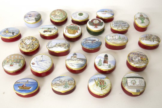 Collection of 24 Limited Edition Anderson’s Nantucket Christmas Themed Enamel Boxes