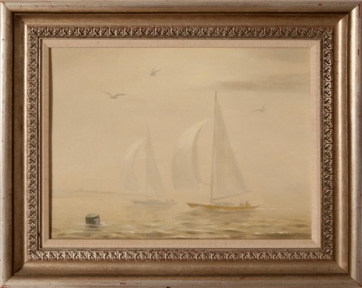 Gerald Taber Oil on Board “Foggy Day Sailing”