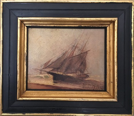 Wendell Macy Oil on Panel “Schooner Run Aground”