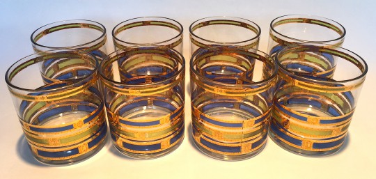 Set of 8 Vintage Culver Rocks Barware in the Empress Pattern