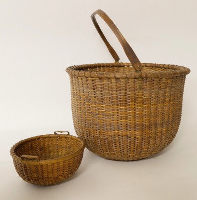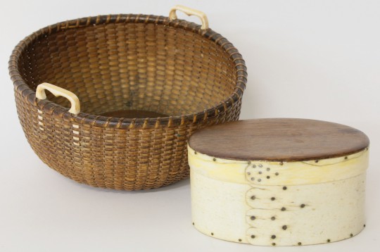 19th C. Nantucket Sewing Basket and 19th C. Sailor Made Panbone Ditty Box