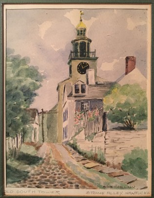 Anne H. Mellin Watercolor “Old South Tower, Stone Alley – Nantucket”