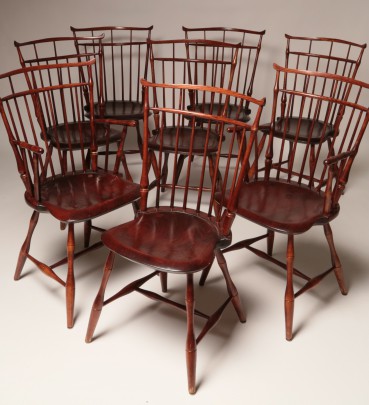Set of Eight Douglas R. Dimes Hand Crafted Bird Cage Windsor Chairs