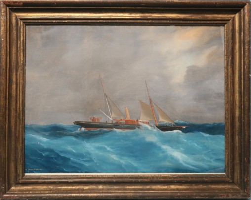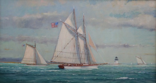 William W. Lowe Oil on Canvas “Schooner Yacht Approaching Nantucket”