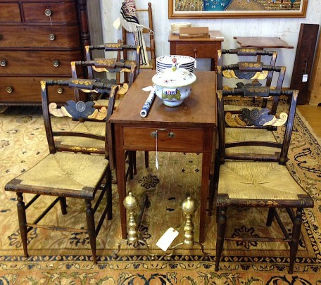Set of Six 19th Century Rush Seat Hitchcock Chairs
