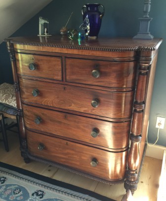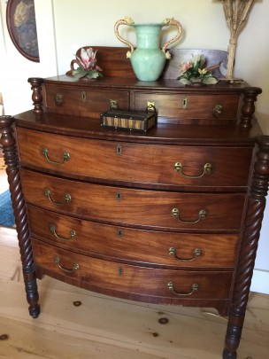 19th Century Mahogany Sheraton Step-Down Bow Front Chest of Drawers