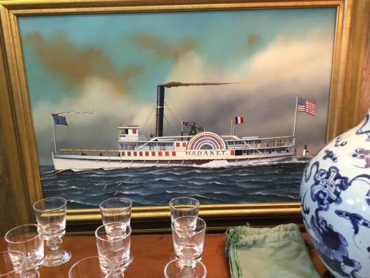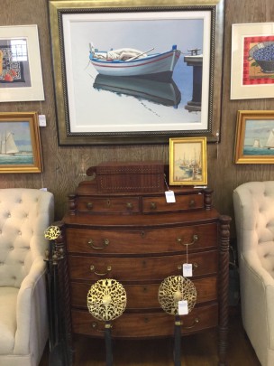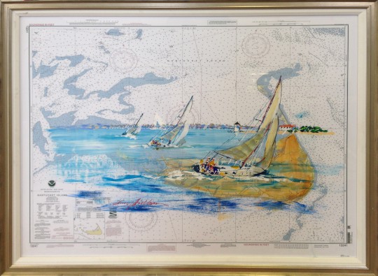 Kerry Hallam Acrylic on Nantucket Chart “Sailboats Rounding Brant Point”