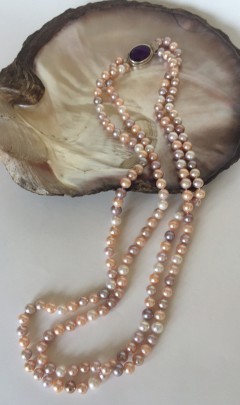 Multi-color Fresh Water Cultured Pearl Double Strand Necklace