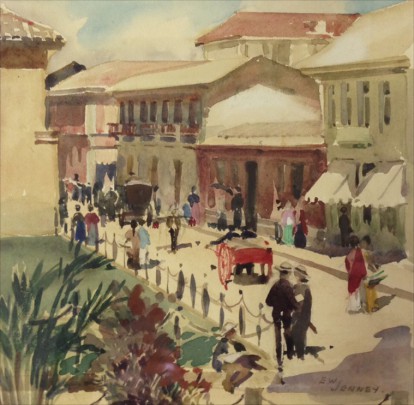 Edgar W. Jenney Watercolor on Paper “French Street Scene”