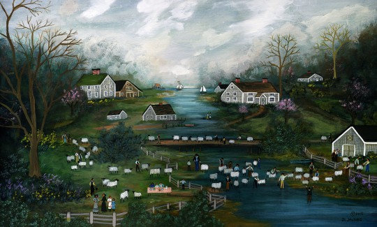 Jan Munro Mixed Media on Masonite “Sheep Washing – Nantucket”