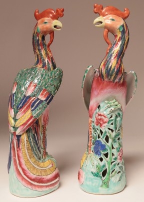 Pair of Chinese Export Famille Rose Models of Phoenixes