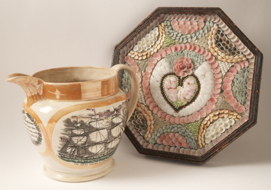 Orange Lustre Pottery Commemorative Jug and 19th Century Sailor’s Valentine