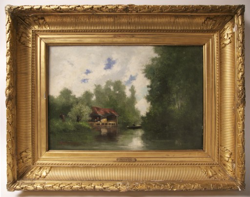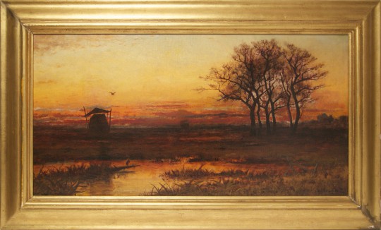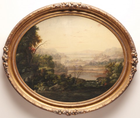 John R. Johnston “River Landscape” Oval Oil on Canvas