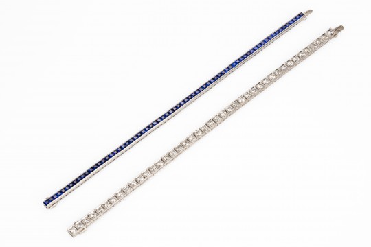 Lady’s Platinum Blue Sapphire Bracelet & Diamond Straight Line Bracelet