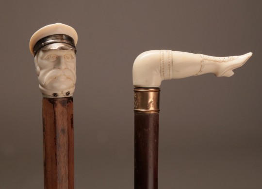 19th Century Sailor Carved Whale Ivory and Whalebone Walking Sticks