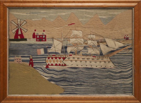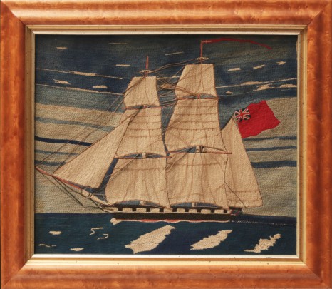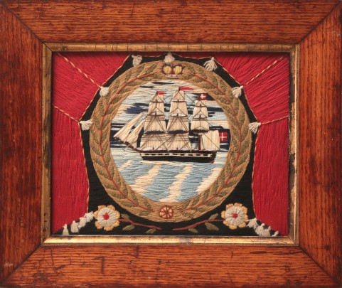 Unusual 19th Century English Woolie “British Schooner and Warship”