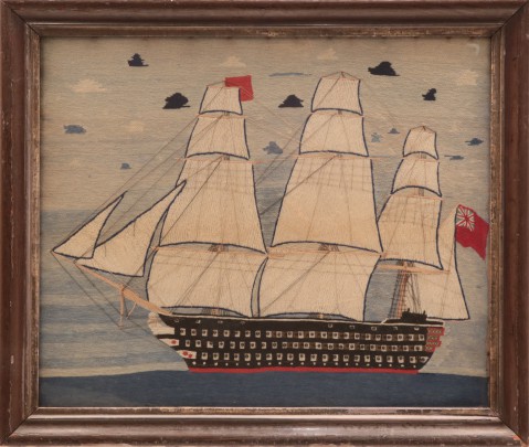 19th Century English Woolie “Portrait of a British Man-O-War”