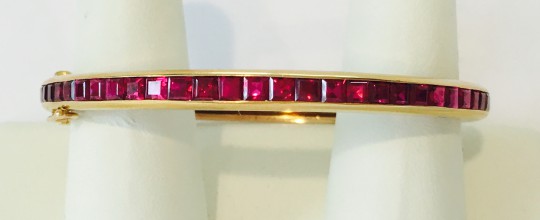 Lady’s 18k Yellow Gold Hinged Ruby Set Cuff Bracelet