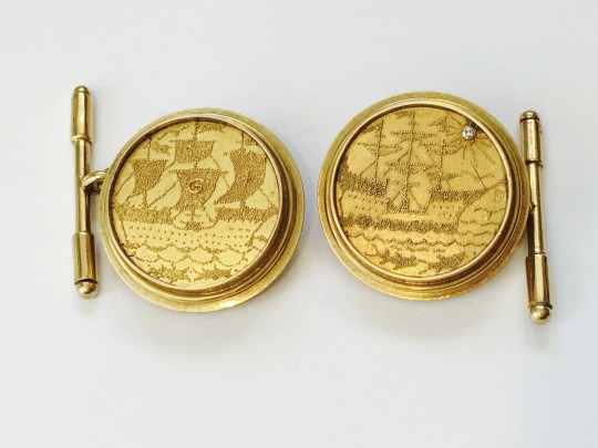 Pair of 18k Yellow Gold Granulated Gold Cuff Links