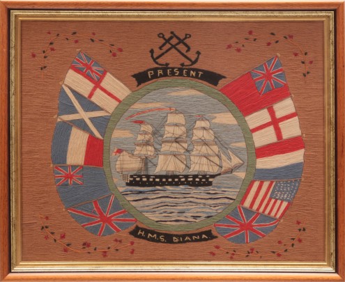 19th Century English Woolie “Portrait of the H.M.S. Diana”