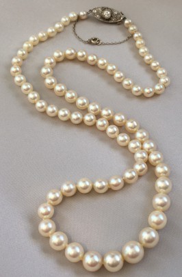 Cream Cultured Pearl and Diamond Pendant Necklace
