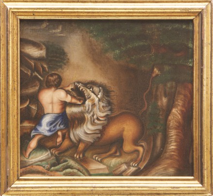 American Primitive “A Boy and His Cat” Oil on Canvas