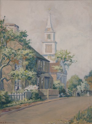William Oliver Stevens “A View of Summer Street, Nantucket” Mixed Media on Paper