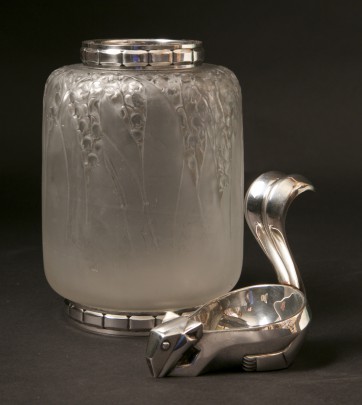 René Lalique Silver Mounted “Muget” Vase & Rare Christofle Art Deco Squirrle Form Nut Dish